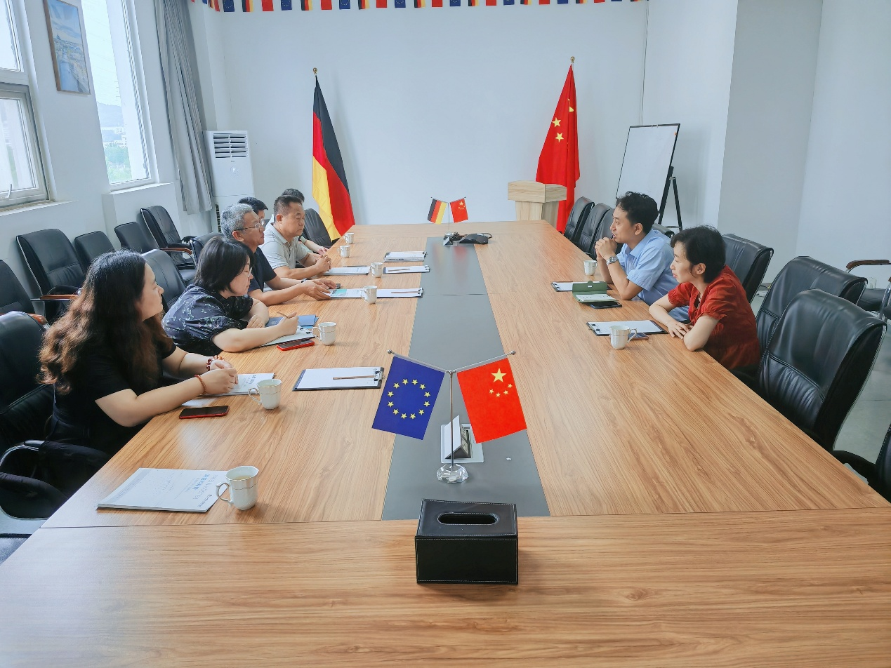 在与莱茵科斯特西海岸基地进行座谈时,该基地教育事业部部长金跃云详细介绍了基地的发展历程以及中德智能制造双跨公共实训基地的服务功能。岳学海介绍了学院的基本情况和专业定位。他强调,学院始终以培养学生人才为目标,要加强实训基地建设,积极打造具有专业特色的人才培养模式。双方就下一步如何深入开展合作,共同培养符合企业需求的高层次应用型复合型人才,打造高水平公共实训基地,深入交换了意见。