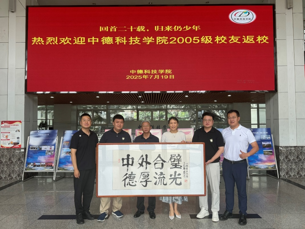 活动中,校友代表共同向学院敬赠一幅写有“中外合璧,德厚流光”的书法牌匾。这八个字凝练体现了学院中外合作办学的特色与底蕴,既承载着校友对母校的感恩之情,也寄托着对学院在中德交流与人才培养领域再创辉煌的美好期许,成为系列活动中极具纪念意义的情感象征。