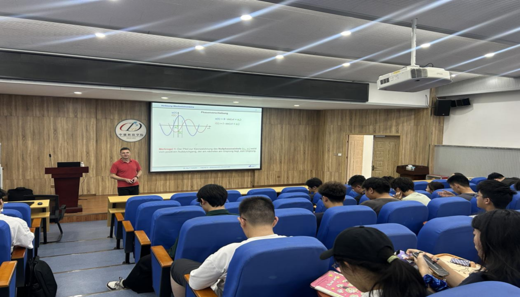 此次授课面向2023级和2024级自动化专业学生开展,Schulte博士深度融合德式教学模式,系统解析电气工程核心知识,通过案例分析与方法引导拓宽学生思维,并在课堂中融入专业德语教学,助力学生夯实专业技能与语言应用能力,为其未来赴德国深造奠定扎实基础。