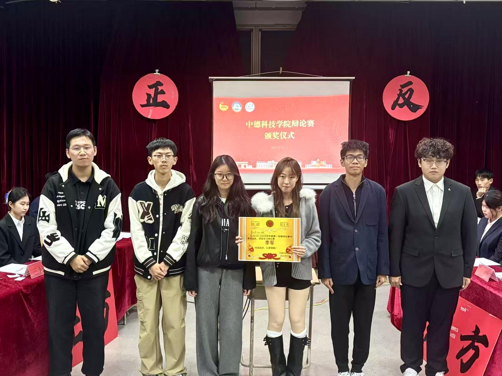 经过激烈角逐,应化中德251代表队凭借出色的辩论技巧与深刻的论点阐释夺得冠军,智能中德252代表队获亚军,自化253代表队获季军。智能中德252代表队的周宇辰同学因语言犀利、攻辩出色,荣获“决赛最佳辩手”称号。